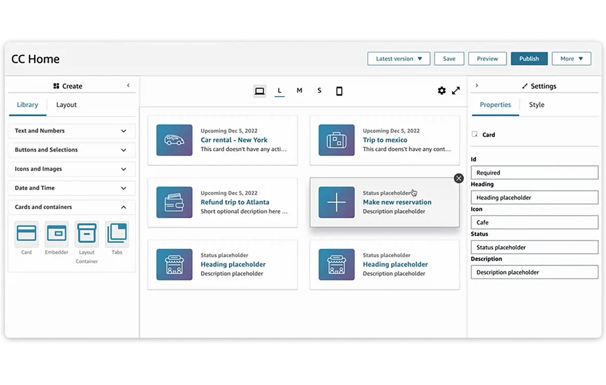 Use the Amazon Connect no-code drag-and-drop interface to easily design and modify the agent workspace, workflows, and step-by-step guides for agents and end-customers. Workflows (i.e., Amazon Connect flows) use the same building blocks as contact routing, enabling you to seamlessly pass customer context from your IVR, chatbots, and step-by-step guides for end-customers to your agents based on context such as call queue and customer information.