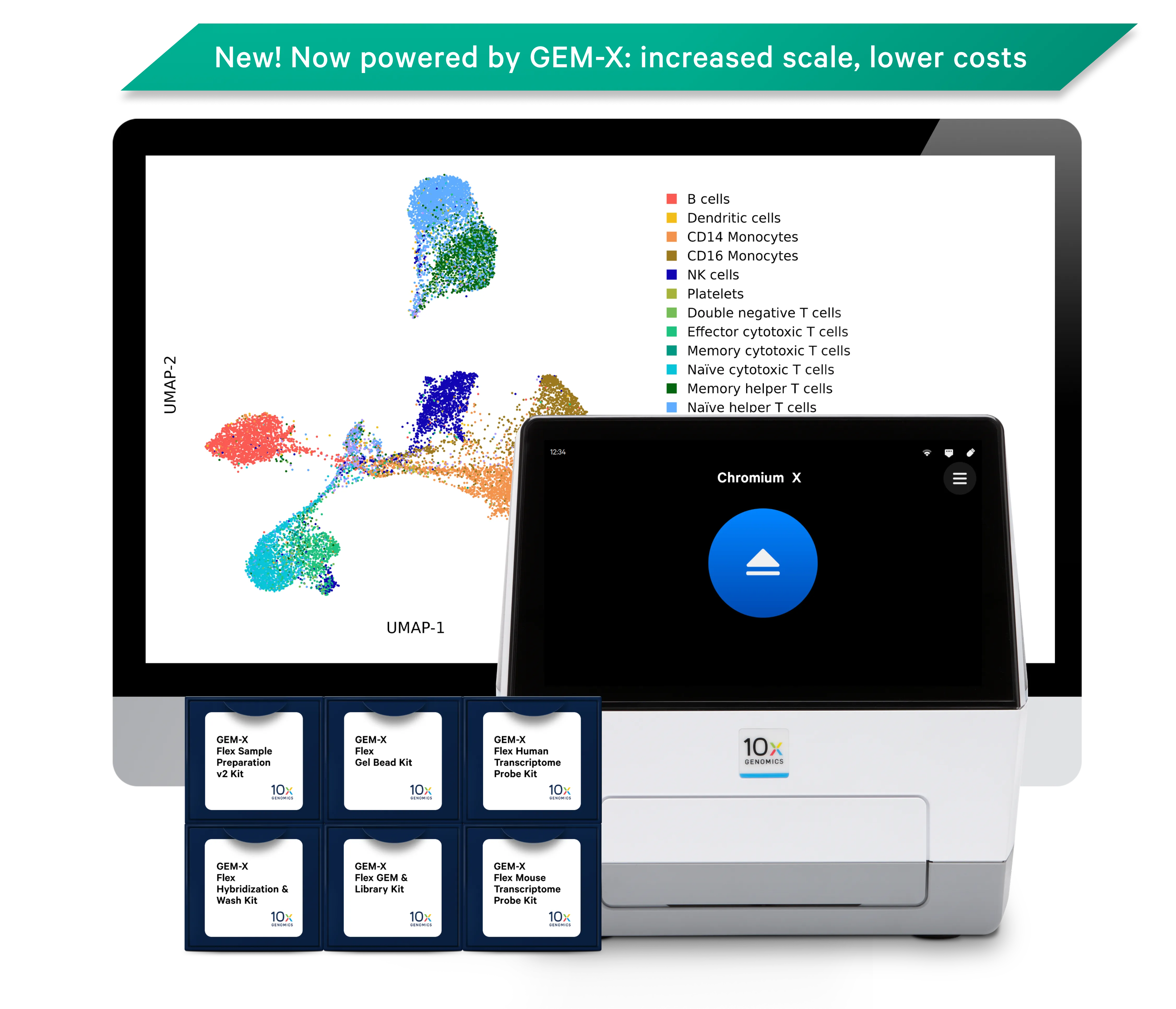 GEM-X Flex Gene Expression is a cutting-edge single-cell analysis product from 10x Genomics that uses probe-based assays and GEM-X technology to capture over 18,000 coding genes. This highly flexible and efficient solution is designed to work with challenging samples and offers exceptional performance with reduced cell input requirements.